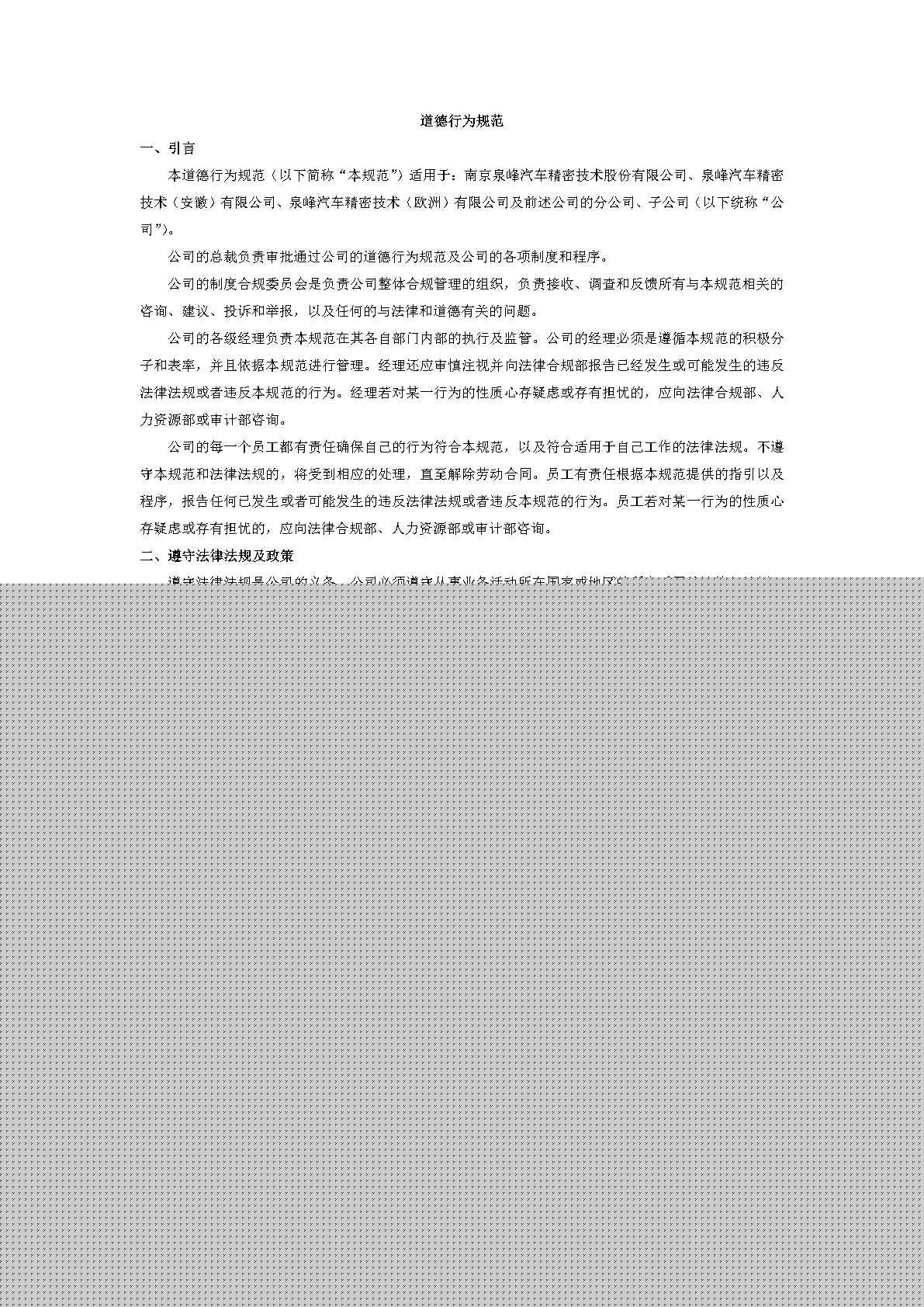 《泉峰道德行為規(guī)范》